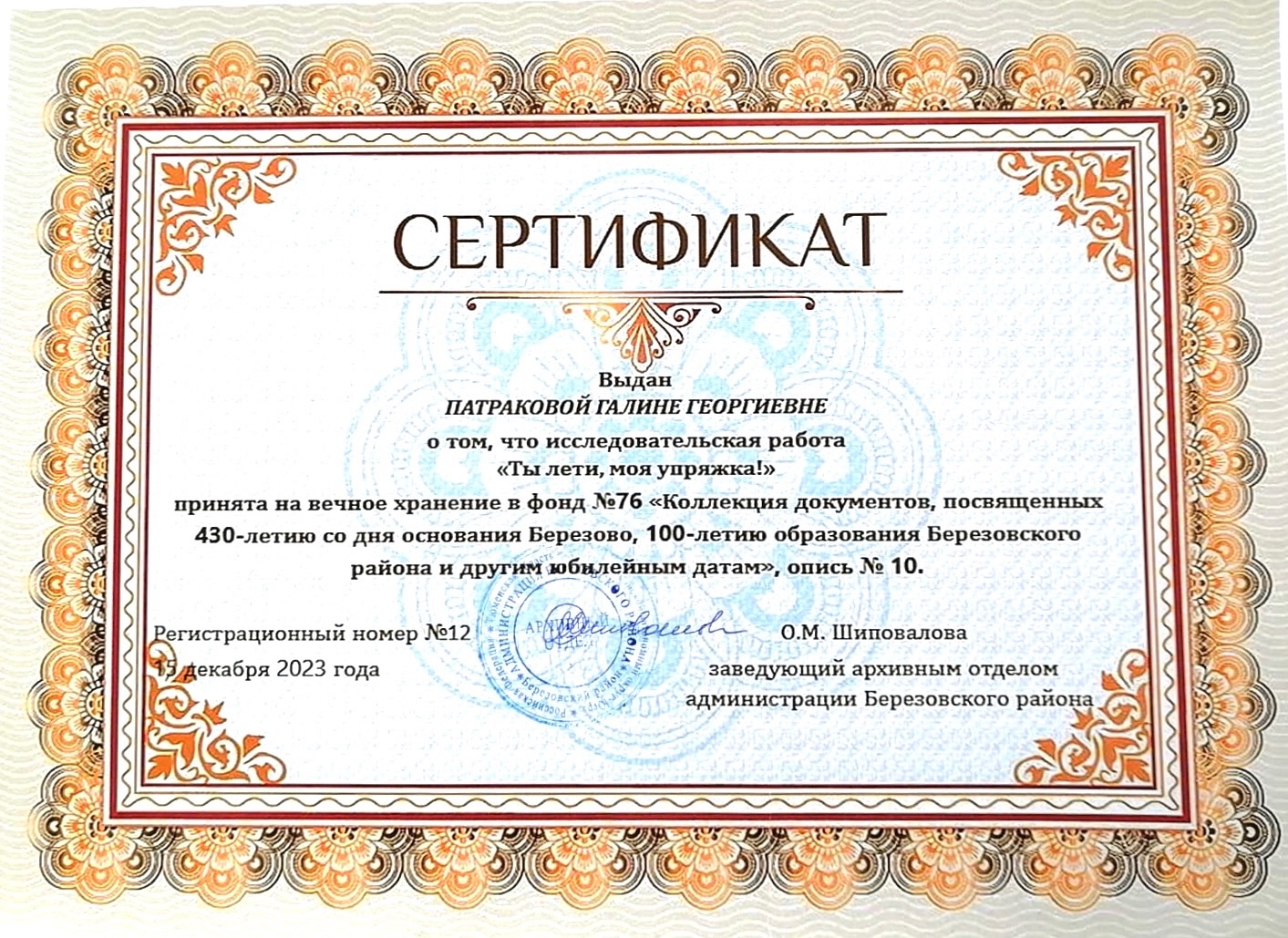 Архивный отдел администрации Берёзовского района: Предоставление доступа к архивным документам и материалам, являющимся основой исследования.