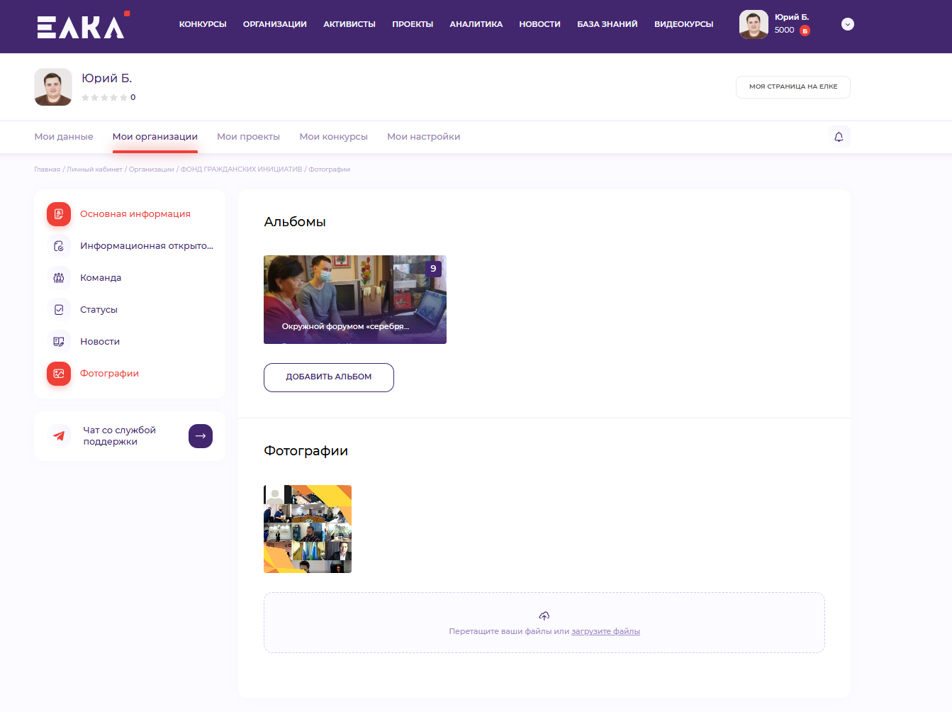 В нашей системе мы добавили возможность организациям и добровольческим объединениям вести раздел с фотографиями.