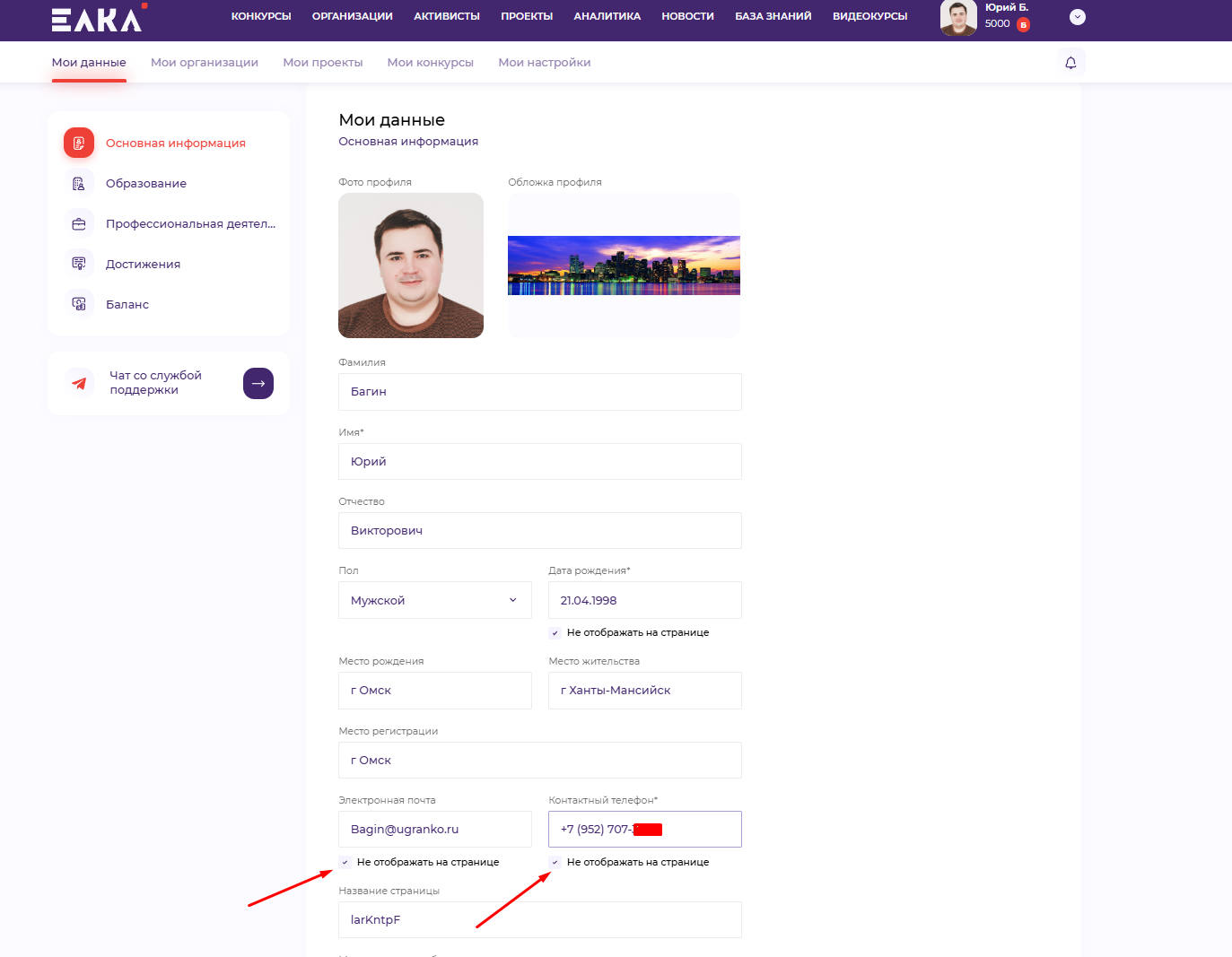 Если вы не хотите чтобы ваши контактные данные или возраст видели другие пользователи, вы можете оставить галочку “Не отображать на странице” там где это доступно.