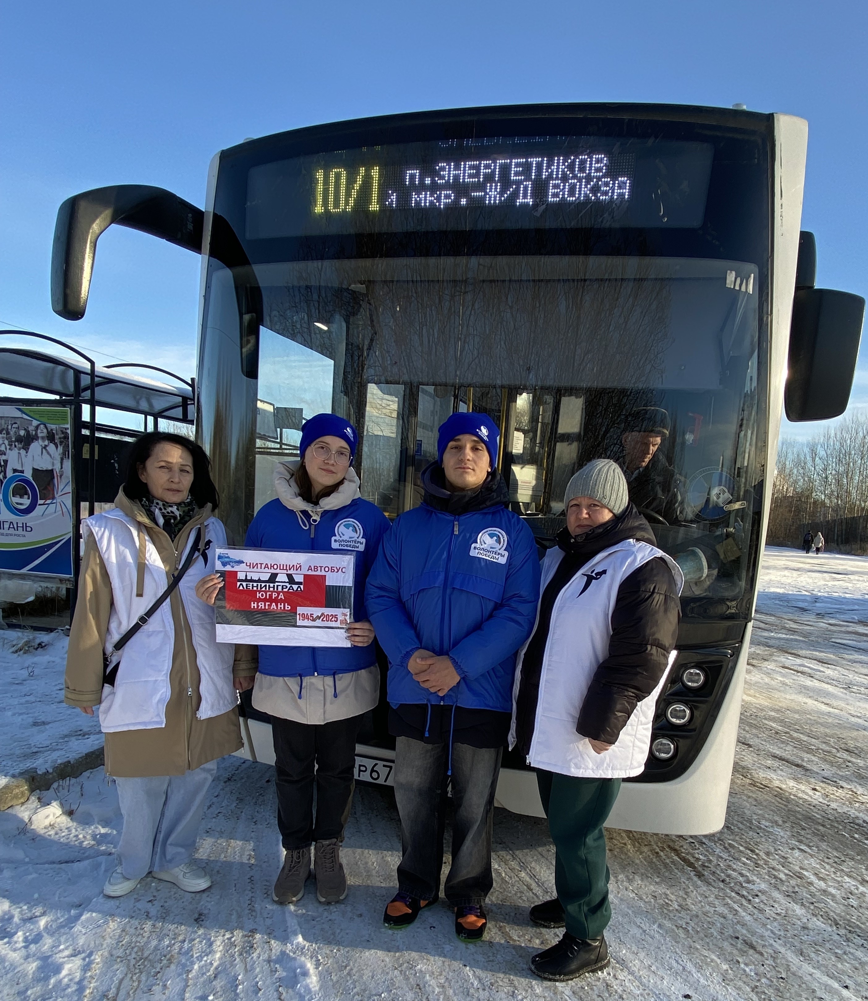 В «читающем автобусе» звучали стихи и отрывки из военных произведений, посвященных Великой Победе и освобождению Ленинграда от фашистской блокады. Периодически волонтеры включали аудиоролик с отрывками произведений авторов-фронтовиков, которые читали победители, призеры и номинанты Цифрового литературно-художественного конкурса чтецов Югры, проведенного АНО «ЦТЭД» совместно с Государственной библиотекой Югры.