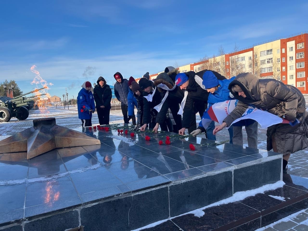 В День народного единства Сургут погрузился в атмосферу памяти и славы. В день воинской славы России активисты Движения Первых, "Волонтеров Победы" и "Юнармии" провели патриотическую акцию "Читающий автобус "Победа помнит Героев"», открытие которой они организовали в сквере «Мемориал Славы» у Вечного огня, где находится композиция «Сургутянам, павшим на фронтах Великой Отечественной войны».