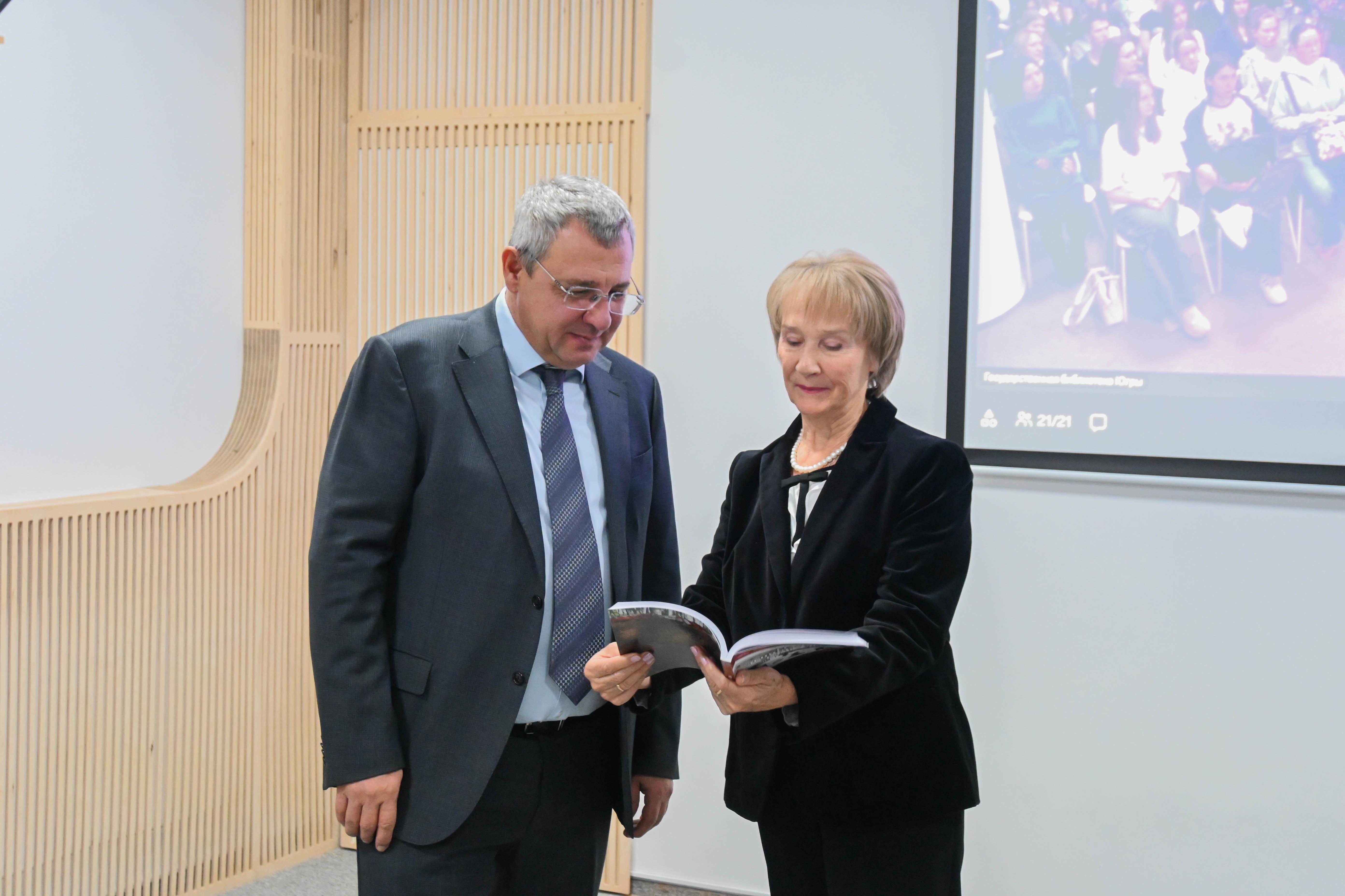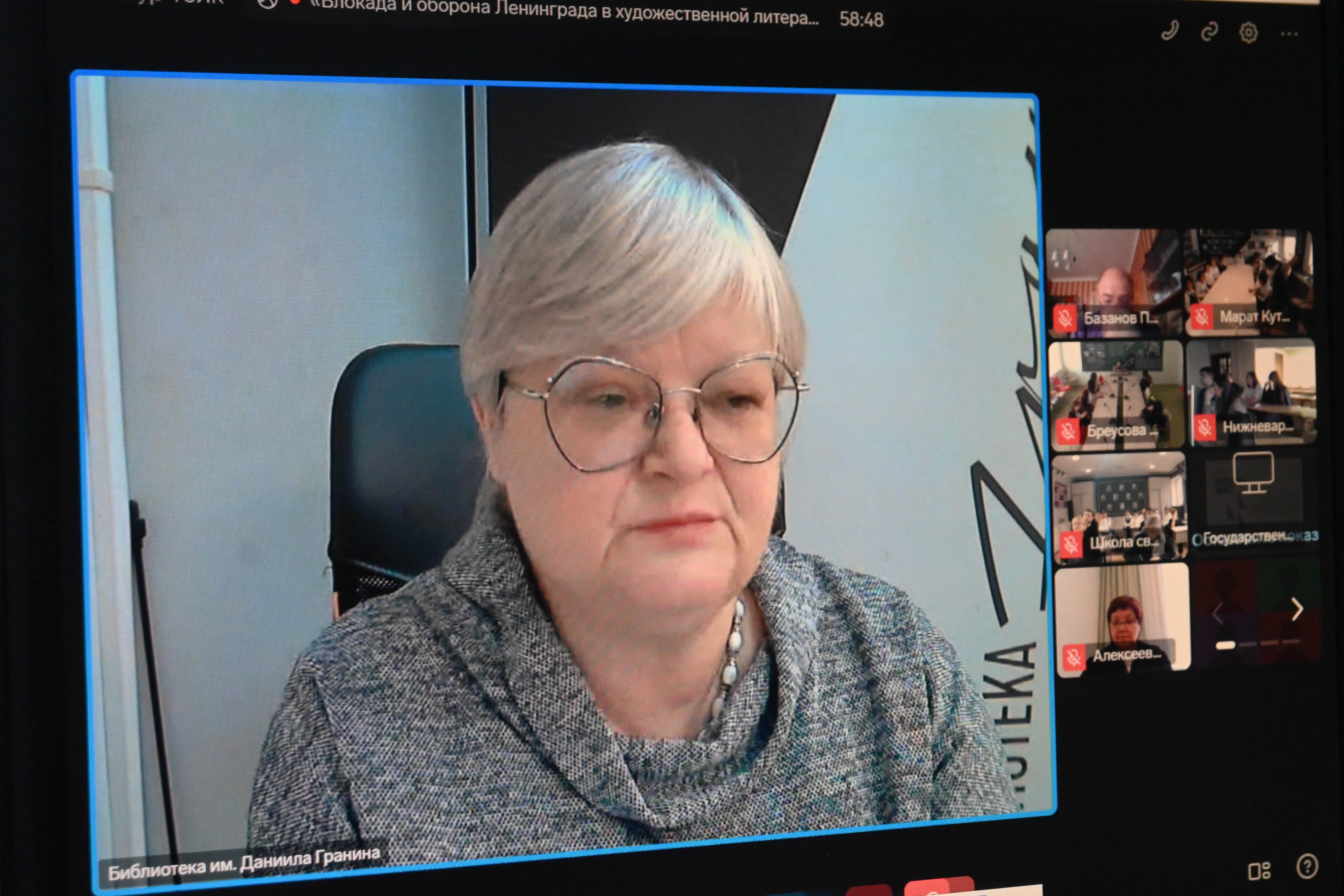 Затем Наталья Маслова подчеркнула, что мы находимся в зале ГБЮ, который еще в начале 2000 годов неоднократно у нас был площадкой для встреч по видеосвязи с выдающимся писателем-фронтовиком, защитником Ленинграда Даниилом Александровичем Граниным и студентами Югры.