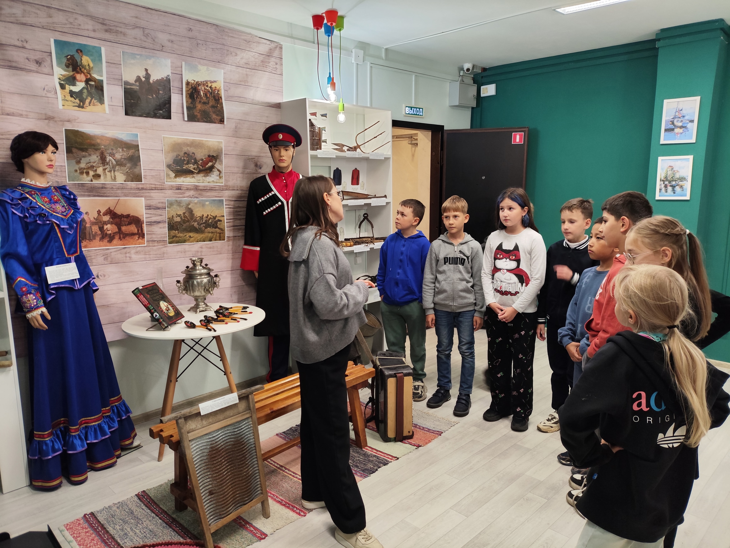 Ребята смогли перенестись в атмосферу старинных традиций Донского края, увидеть уникальные предметы быта, оружие и одежду настоящих казаков. Юные экскурсанты активно взаимодействовали с экспонатами в интерактивной зоне и с явно выраженным интересом слушали библиотекаря, повествующего об особенностях казачьего быта.