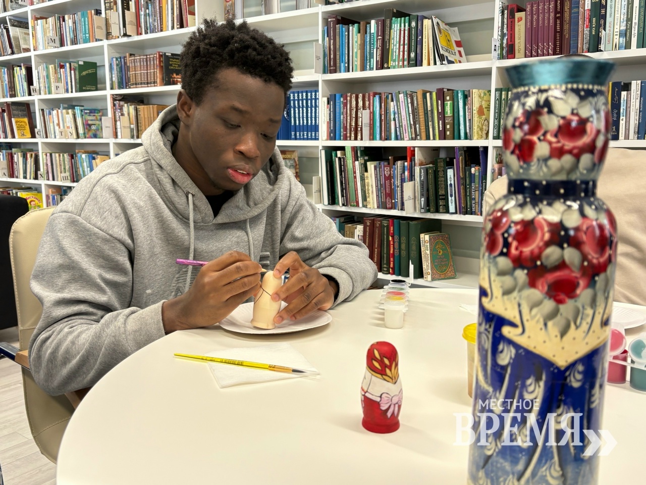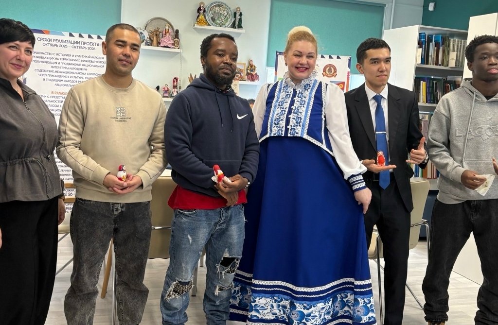 Иностранные студенты Международного отдела Нижневартовского госуниверситета (НВГУ) совершили необычное культурное путешествие - посетили городскую библиотеку №5. Эти молодые люди учатся в Нижневартовске по квоте Правительства РФ, осваивают разные специальности и постепенно погружаются в атмосферу российской жизни. Для группы студентов из ближнего и дальнего зарубежья была организована увлекательная экскурсия по Городской библиотеке №5, во время которой студенты узнали много интересного о богатой истории библиотеки, ее фондах и услугах и, в целом, о русской культуре. Кульминацией встречи стал мастер-класс по росписи матрёшки - традиционного русского символа.