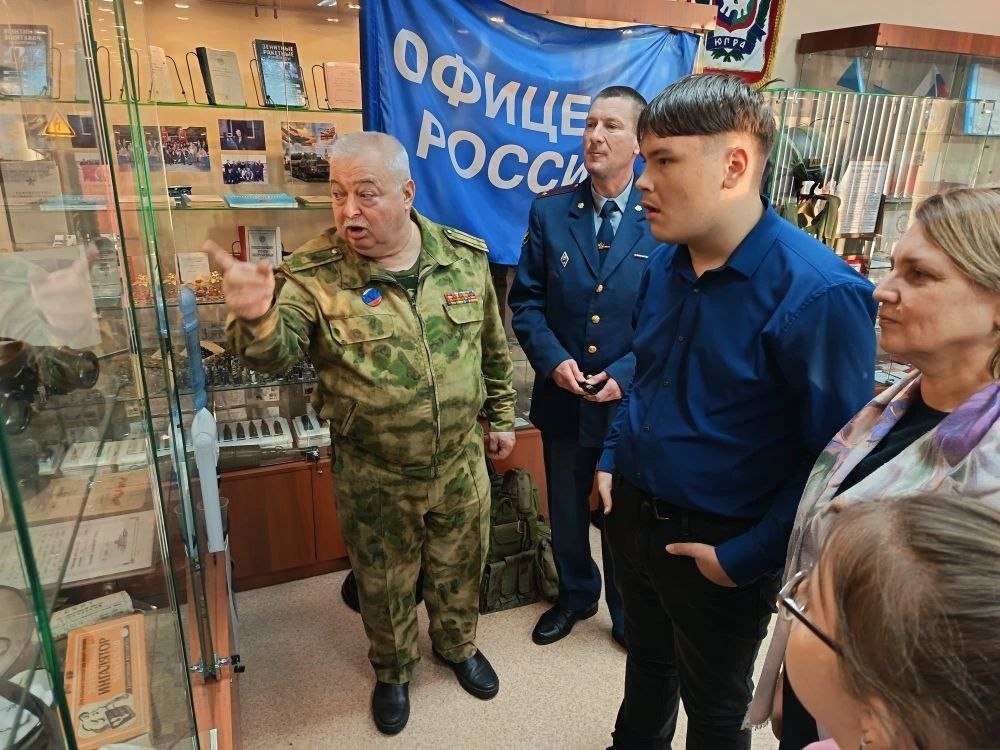 Председатель Президиума регионального отделения ХМАО-ЮГРА Общероссийской общественной организации ОФИЦЕРЫ РОССИИ подполковник в отставке Сусидко Александр Иванович, ветеран военной службы и подполковник в отставке Бобров Сергей Сергеевич провели экскурсию и урок мужества.