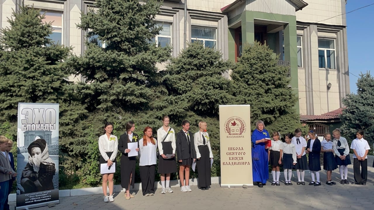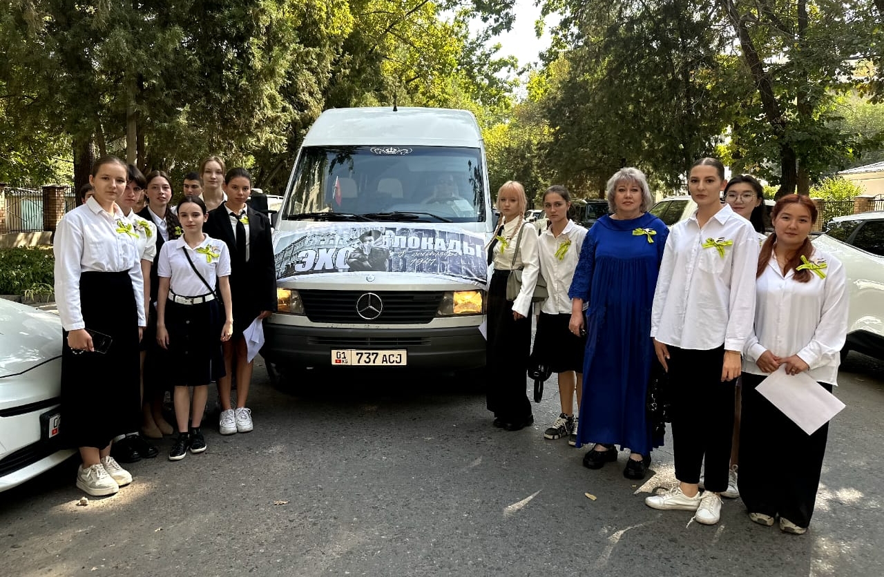 Особое место в Международной акции в Бишкеке заняла «Полевая почта». Дети написали письма блокадникам – слова благодарности, поддержки и памяти. Эти письма собирались в автобусе с логотипом проекта «Эхо блокады», который стал символом связи поколений.