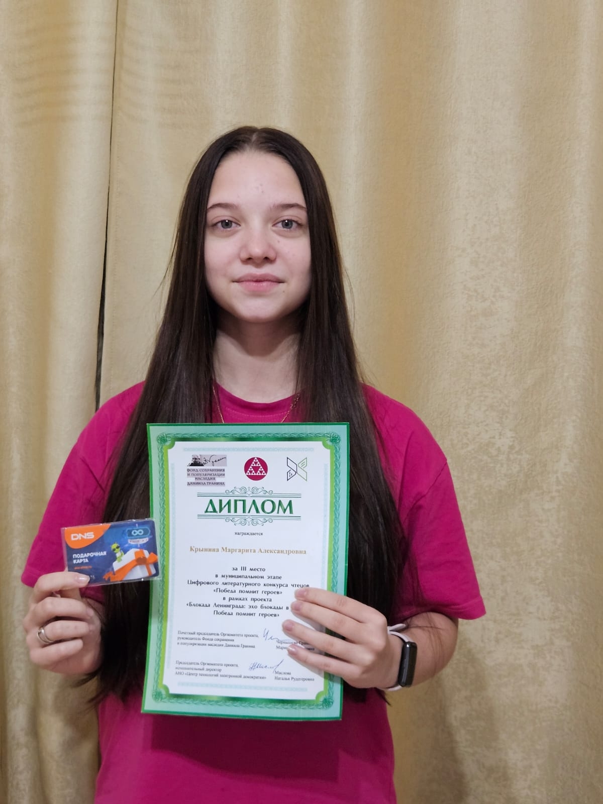Региональное Жюри отметили 24 участника Конкурса из округа, которые заняли призовые места. Среди них и наша юная участница, ученица 4 «А» класса школы №1 Сорокина Аделина с произведением Ольги Берггольц «Сестре», заняла 2 место.