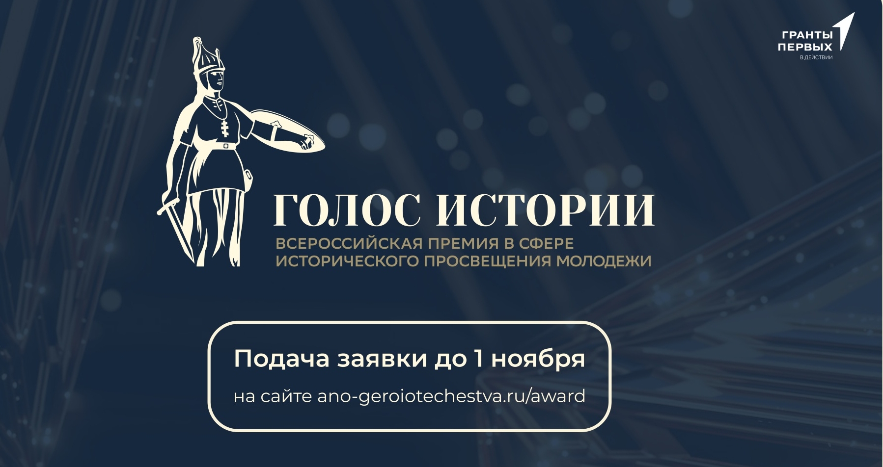 Открыт прием заявок на первую Всероссийскую премию в сфере исторического просвещения молодежи «Голос истории»
