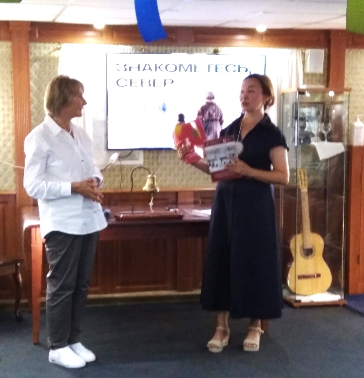 Затем Наталья Рудегеровна вручила печатный сборник «Грани Ленинградской блокады», подготовленный по результатам проектов Светлане Чернышовой. В сборнике представлена информация о блокаде и обороне Ленинград, об участии представителей коренных народов Севера в Великой Отечественной войне и в защите блокадного города, о вкладе Югры в Великую Победу, а также биографии и военные произведения югорских авторов из числа КМНС.