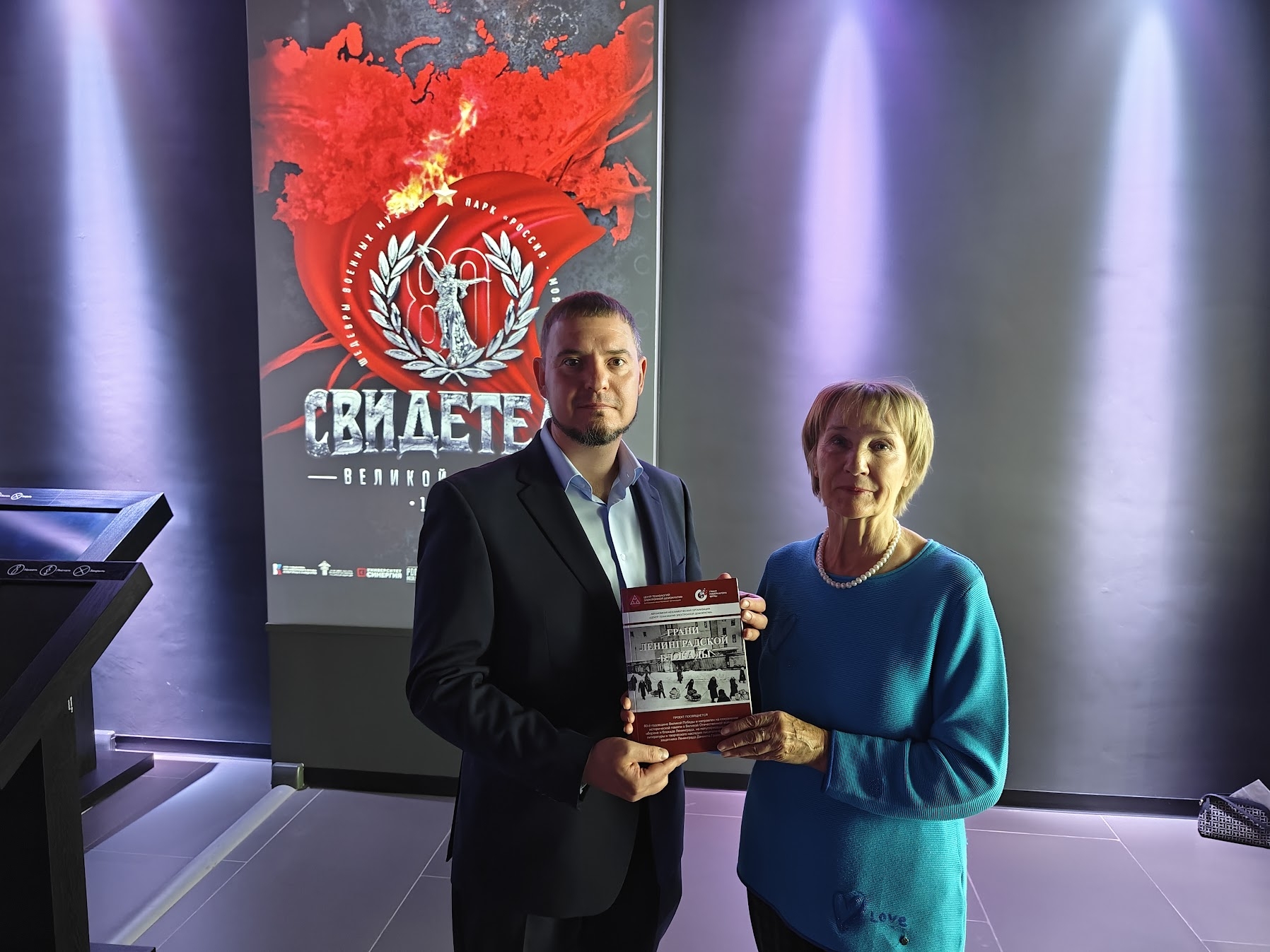 Наталья Маслова вручила Андрею Никитину печатный сборник «Грани Ленинградской блокады», выпущенный по результатам этого проекта, и обсудила возможности участия исторического парка в Международной Интернет-конференции «Блокада и оборона Ленинграда в художественной литературе, в письмах, документах, дневниках - 2025».