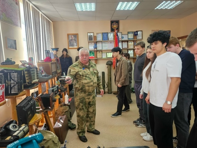 Особую ценность мероприятию придала экскурсия в музее 512-го зенитного ракетного полка, где история оживала перед глазами студентов.Разговор шел не только о прошлом, но и о настоящем. Александр Иванович затронул тему службы в армии и специальной военной операции.