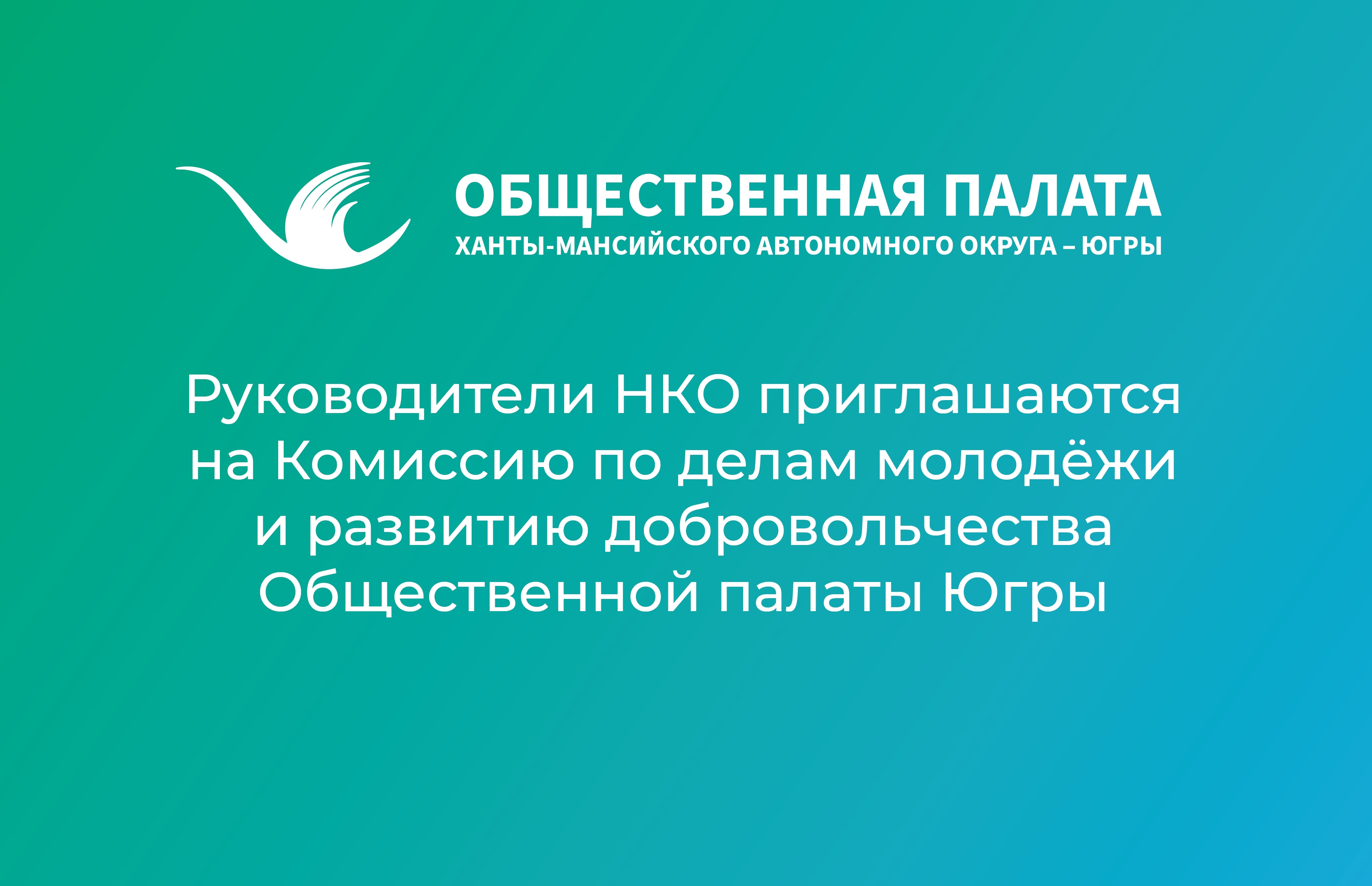 Руководители НКО приглашаются на заседание Комиссии по делам молодёжи и развитию добровольчества Общественной палаты Югры