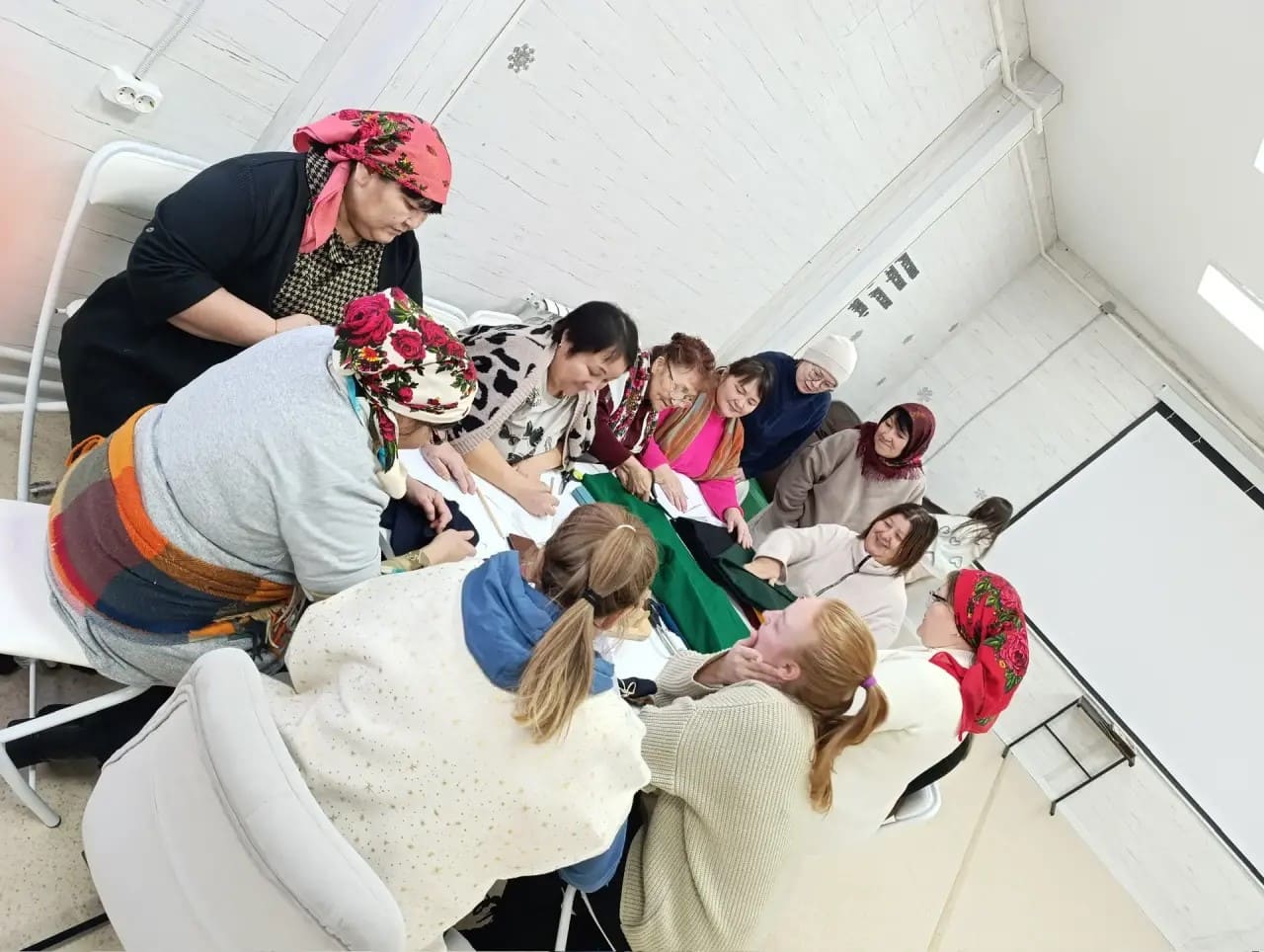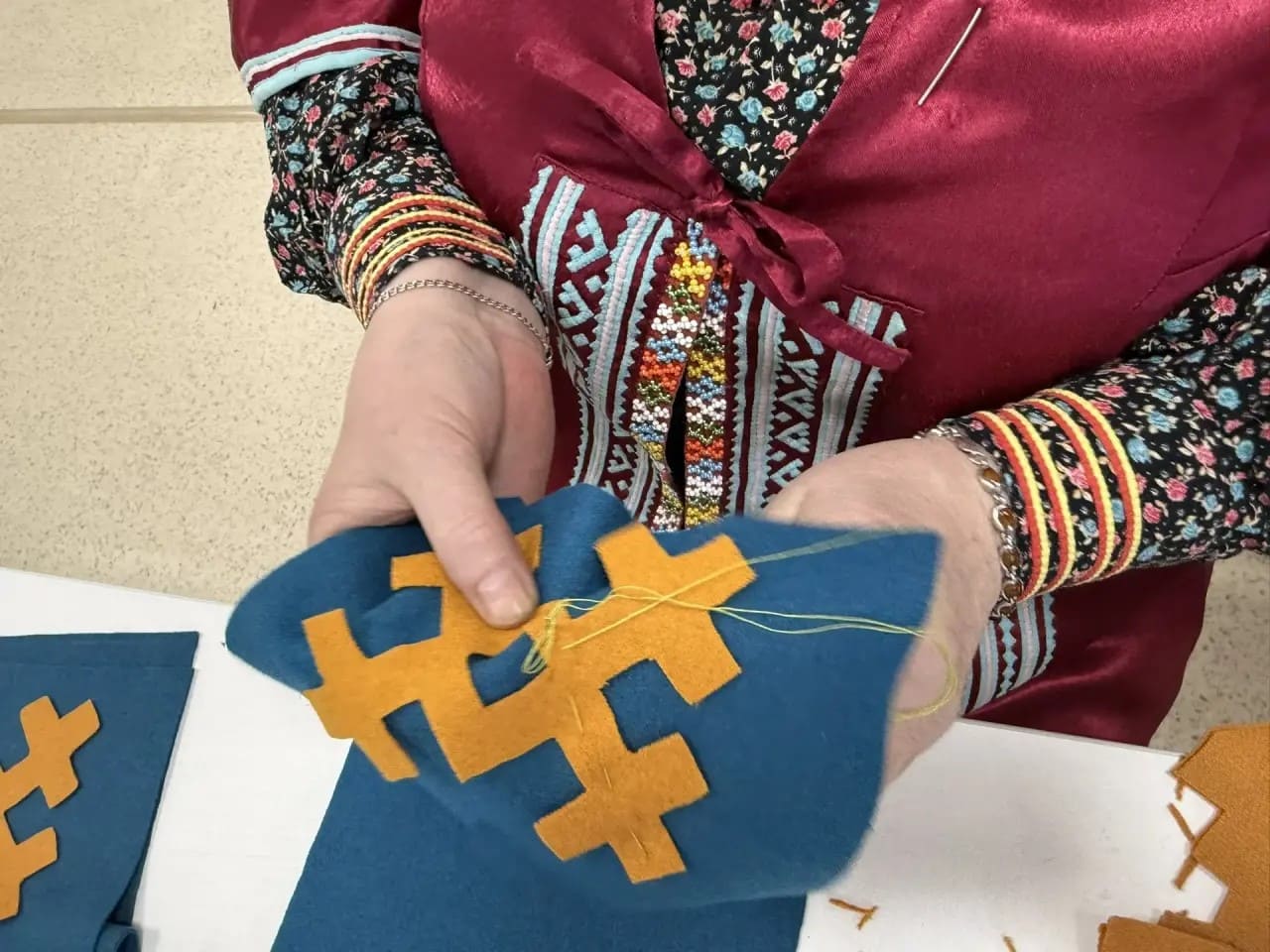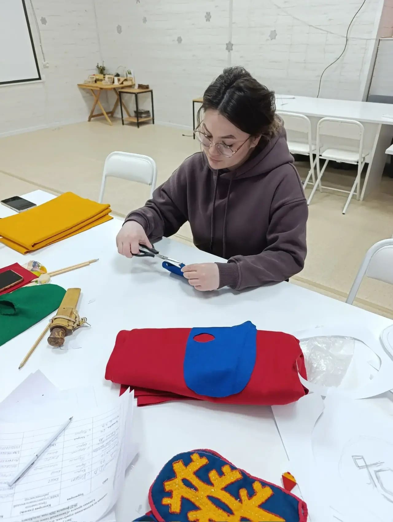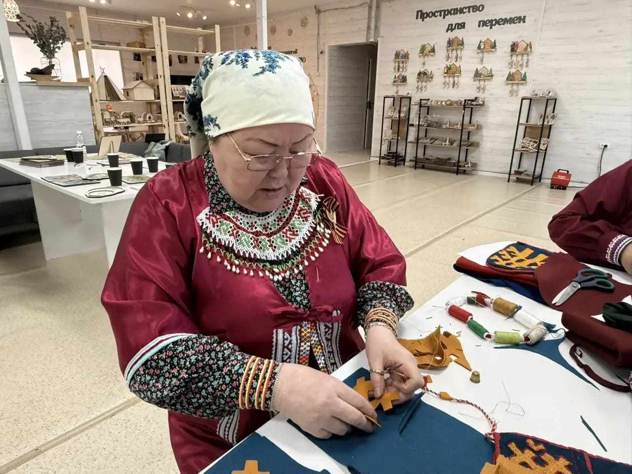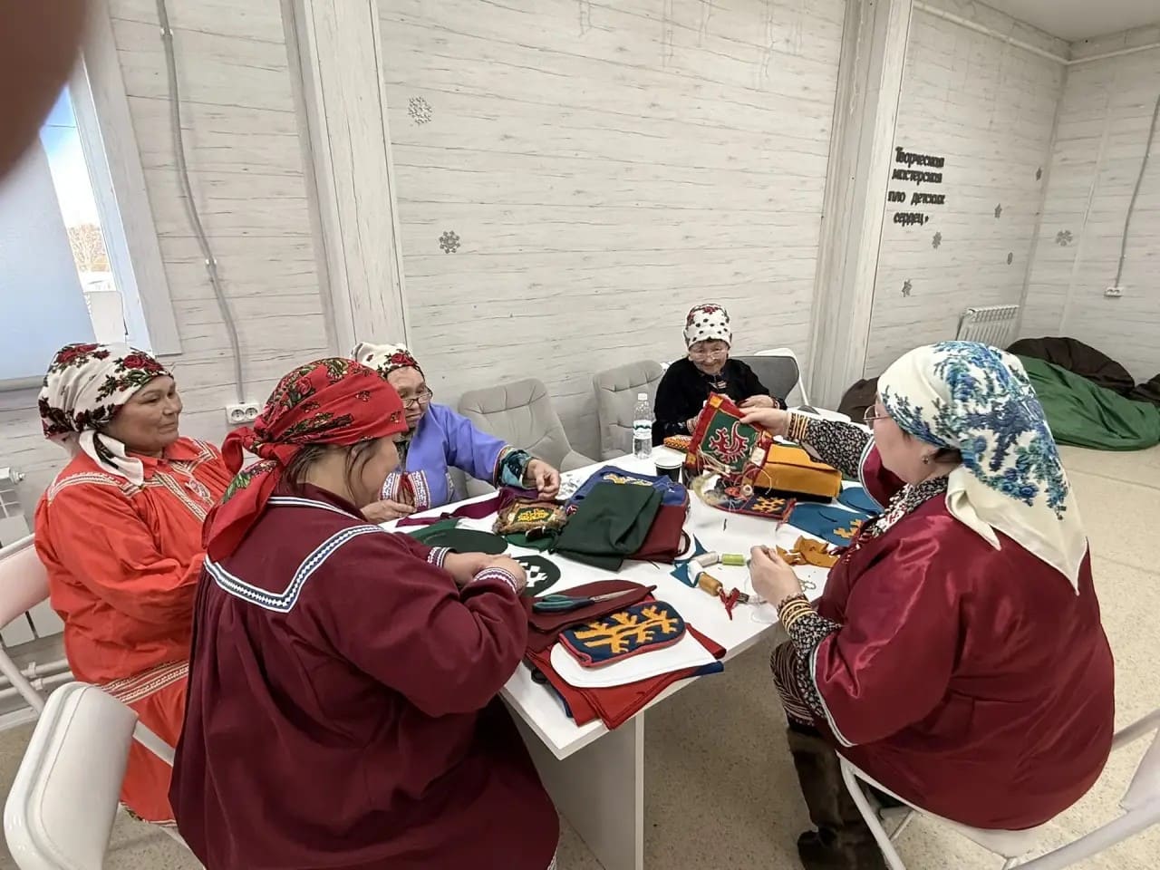 Если лекции дали понимание образа, то семинар подарил навык его воплощения. Под руководством наставников участники приступили к изучению технологий пошива традиционных предметов. Кульминацией практикума стала кройка и начало изготовления ритуальных варежек — неотъемлемого атрибута Медвежьих игрищ.
