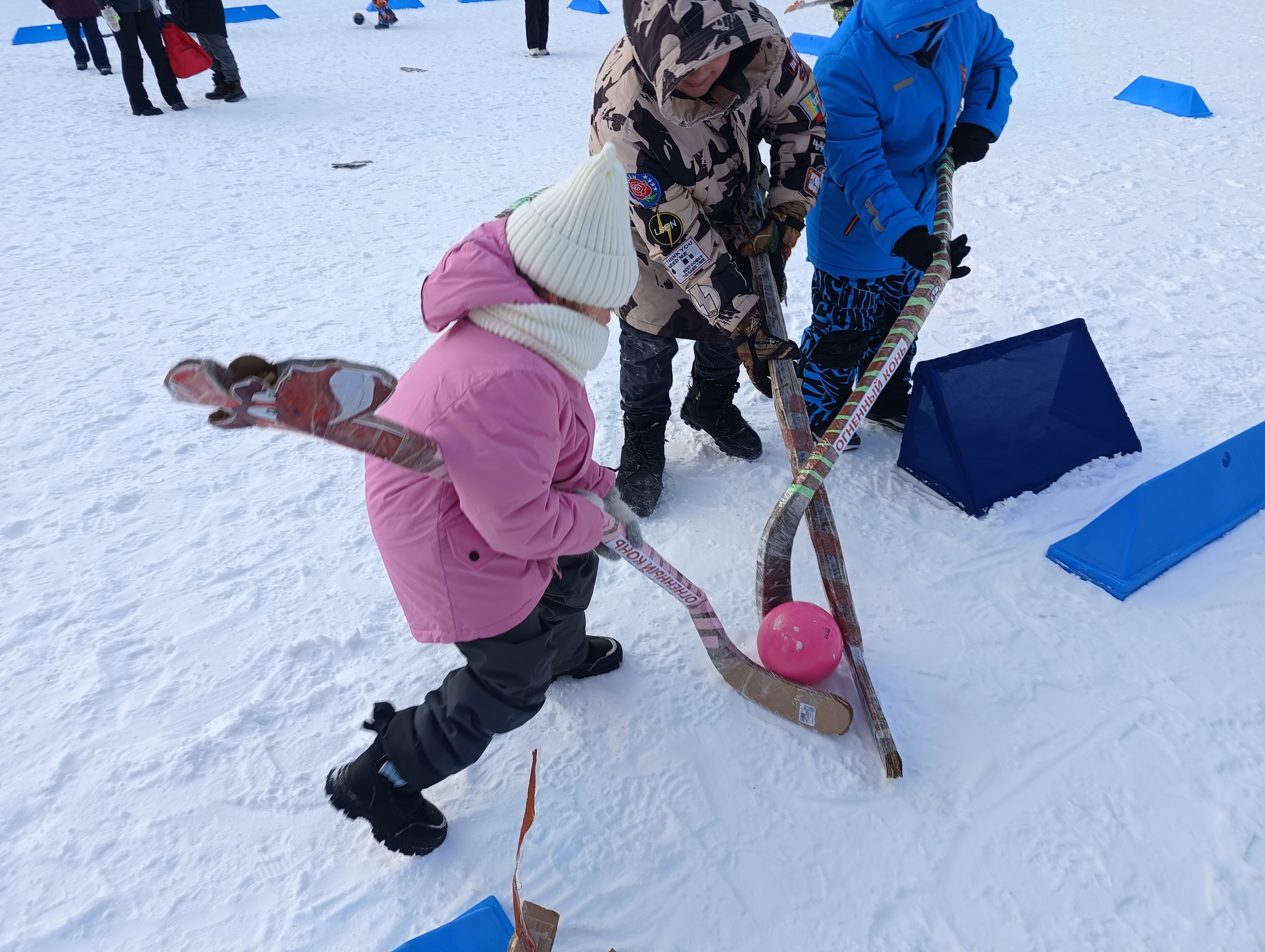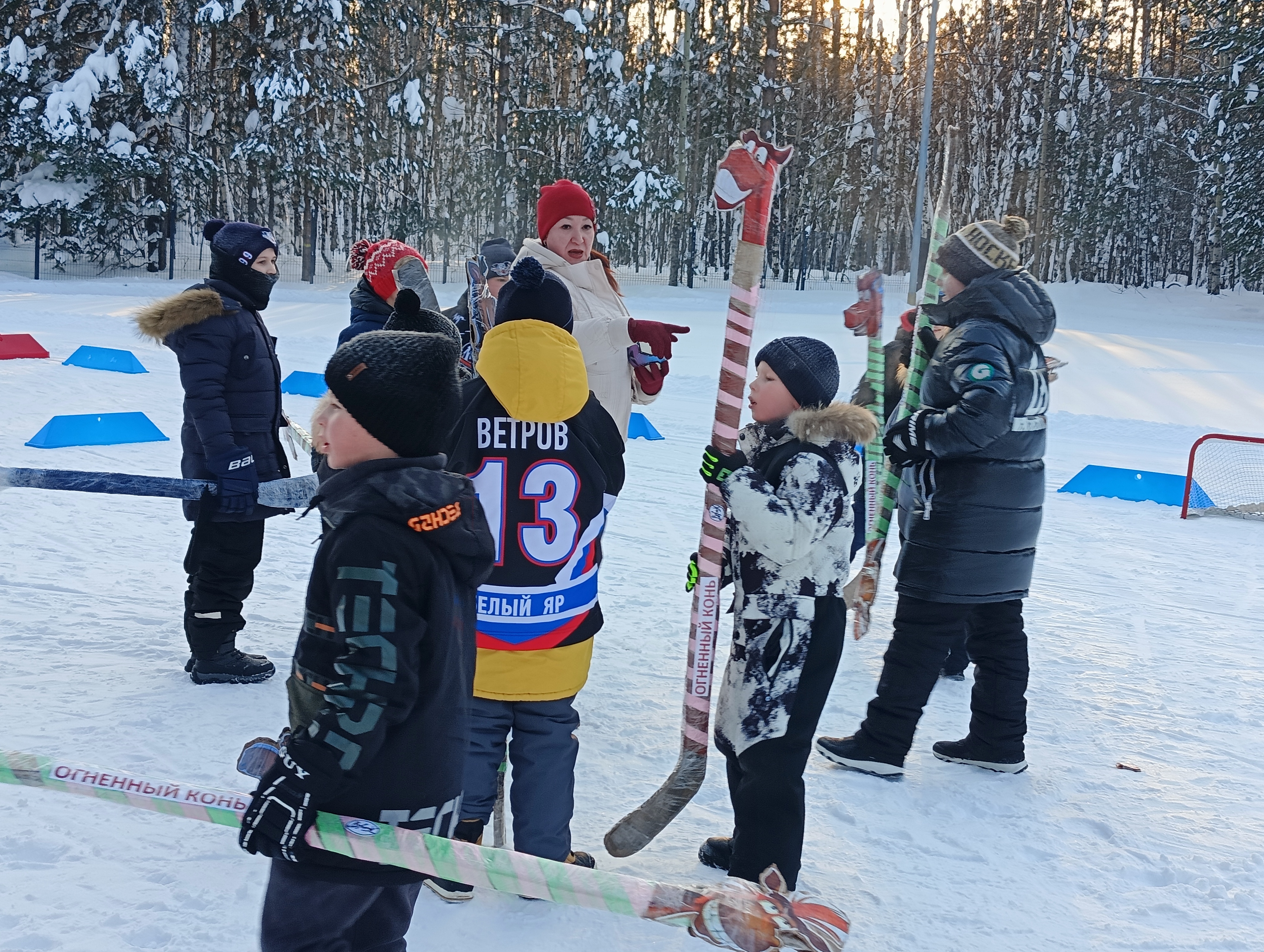Вариация игры в хоккей самодельными клюшками с головой символа года- коня. Весело, задорно и по спортивному.Мероприятие входит в программу "Зимний образовательный интенсив по инклюзивному хоккею на коньках в Сургутском районе", в рамках реализации проекта Региональная инклюзивная образовательная смена физкультурно-спортивной направленности посредством хоккея на коньках для детей с ментальными нарушениями.