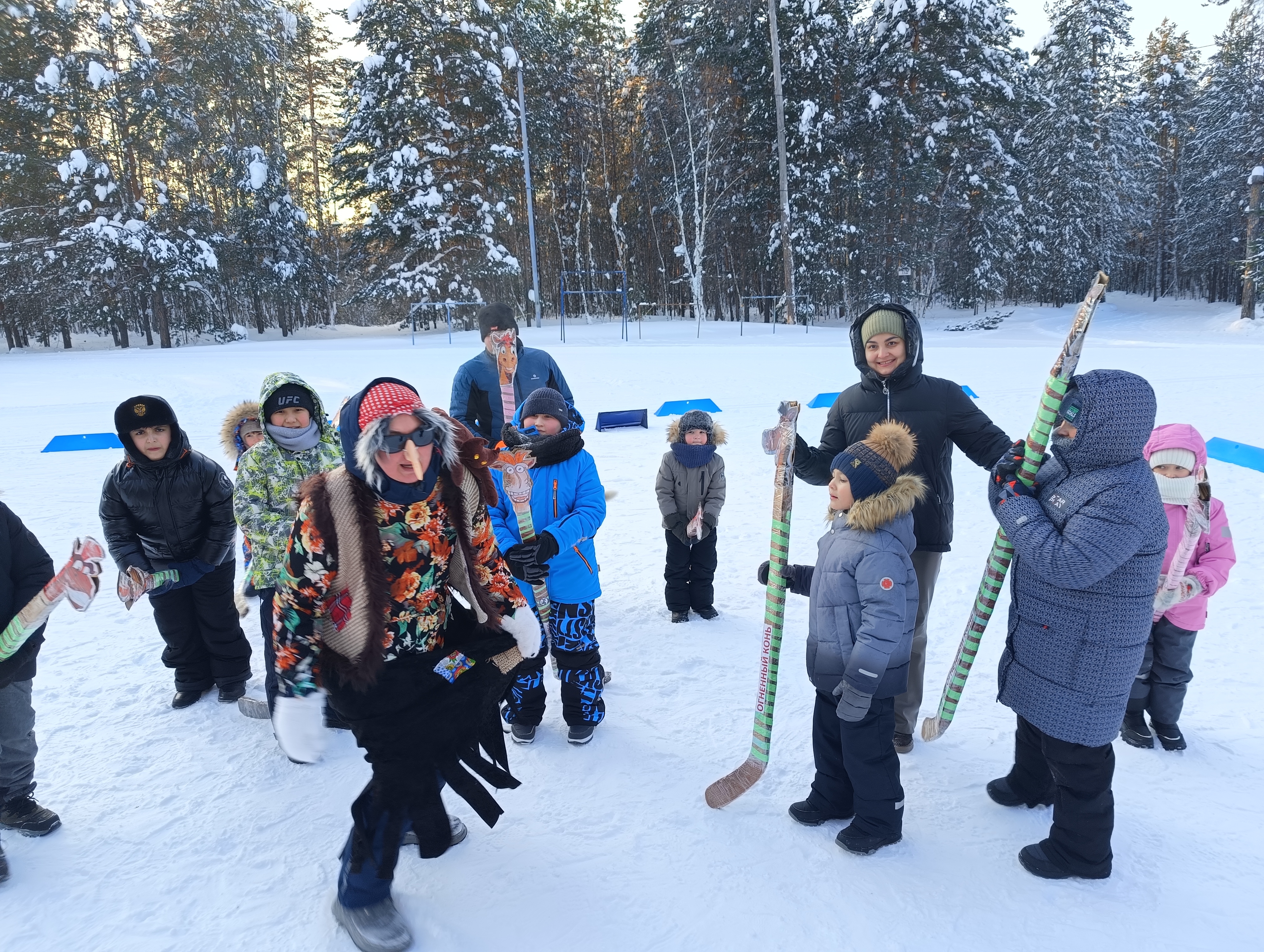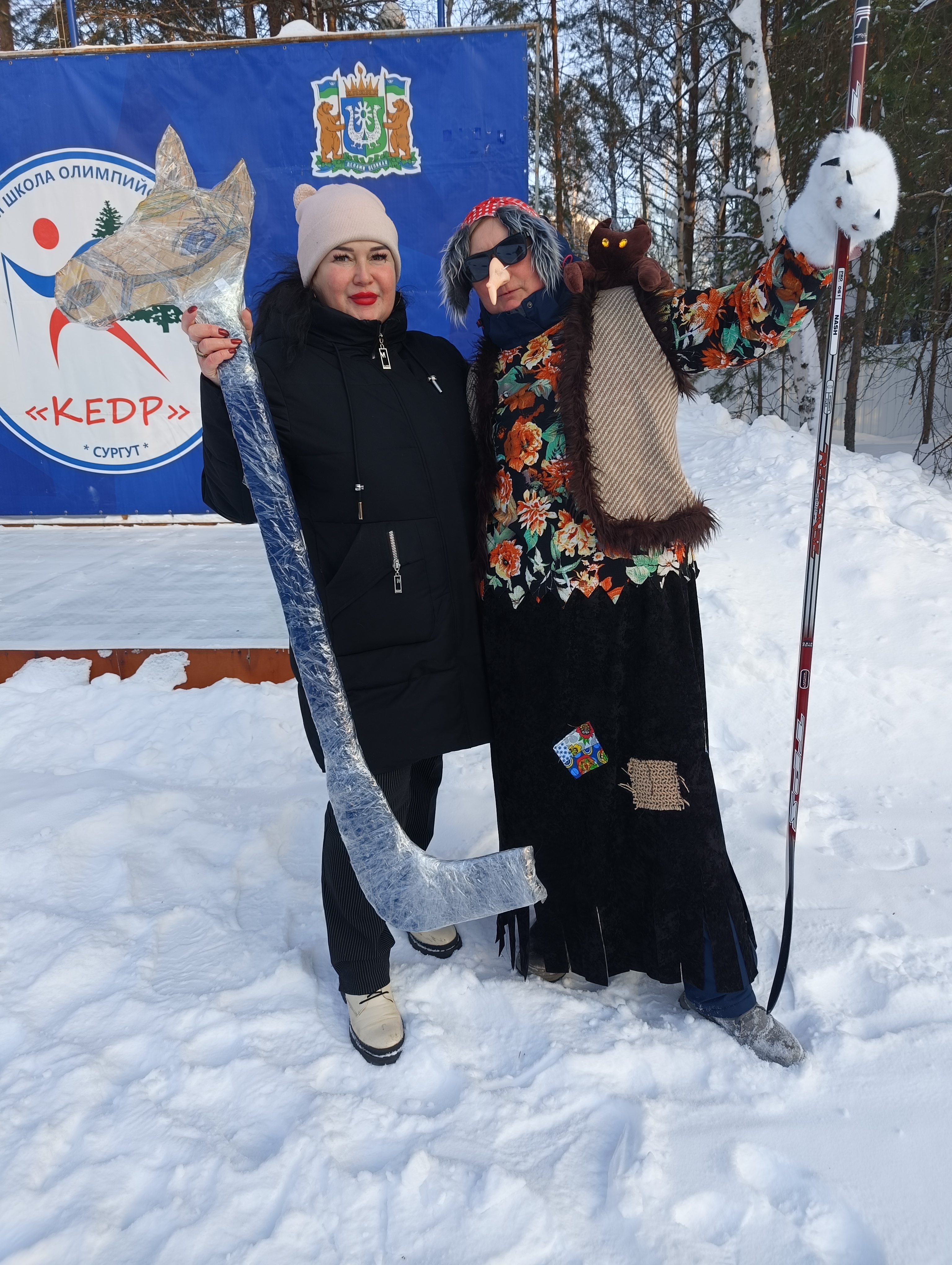 Творческое сопровождение мероприятия сказочным персонажем Баба- Яга организовано мамой инклюзивного хоккеиста Людмилой Кирилловой. Сама сделала костюм, сама выступила в роли актрисы, импровизируя по ситуации. Мероприятие стало площадкой для самореализации детей и родителей в физической активности и творческом потенциале.