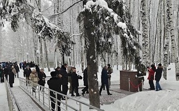Сегодня у Памятника стоял почетный караул и к нему принесли много живых цветов.