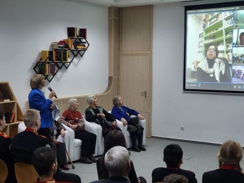 Маргарита Яковлевна Кузьменкова, блокадница, председатель городского добровольного общества «Жители блокадного Ленинграда» г. Ханты-Мансийска рассказала об эвакуации детей с родителями из блокадного Ленинграда и добавила: «Когда мы эвакуировались, я была совсем ребенком. Поэтому о блокаде я знаю больше от своих родных, по воспоминаниям своей мамы и сестры, которой было 6 лет, а также от членов общества блокадников. Но много узнаю, когда посещаю Санкт-Петербург, практически каждый год. Нас приглашают на Международный съезд блокадников Ленинграда, посвященный полному освобождению Ленинграда от фашистской блокады. Мы посещаем братские могилы на Пискаревском кладбище, также мы бываем в Парке Победы, в сквере «Блокадников» у памятника «Мужеству ленинградцев, отстоявших город». Маргарита Яковлевна поблагодарила школьников за интерес к истории блокады и обороны Ленинграда и пожелала всем собравшимся здоровья, счастья, успехов и мирного неба.