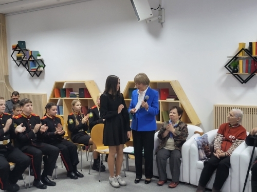 В категории «от 14 до 18 лет» первое место заняла Тоюнда Валерия из Ханты-Мансийска. Она пришла в библиотеку вместе с дедушкой и прочитала фрагмент стихотворения Ольги Берггольц «В госпитале».