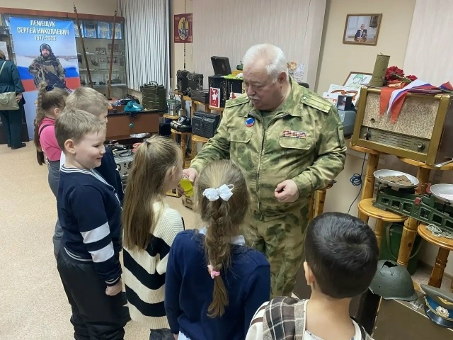 И снова в гостях юные сургутяне. Обучающиеся 1 "В" класса МБОУ СОШ 9 г. Сургута. В музее 512-го зенитно-ракетного полка председатель Президиума Регионального отделения ХМАО-Югры Общероссийской общественной организации ОФИЦЕРЫ РОССИИ подполковник в отставке Сусидко Александр Иванович провел экскурсию и урок мужества.
