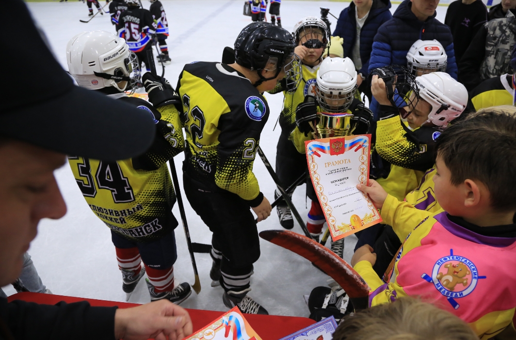 На церемонии закрытия поздравил спортсменов и вручил наградную атрибутику и подарки участникам соревнований заместитель главы г. Нефтеюганска Николай Иванович Кондратьев.ООО «РН- Юганскнефтегаз» поддержали проект, участники соревнований получили дополнительные призы- хоккейный инвентарь.