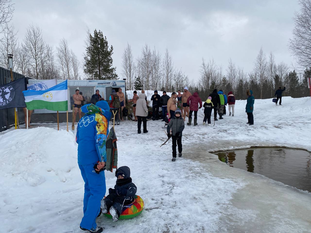 В этот выезд у у частников была возможность окунуться в холодную прорубь, так как маршрут начинался у клуба моржевания "Бодрячок", где специально оборудовано пространство для купания.