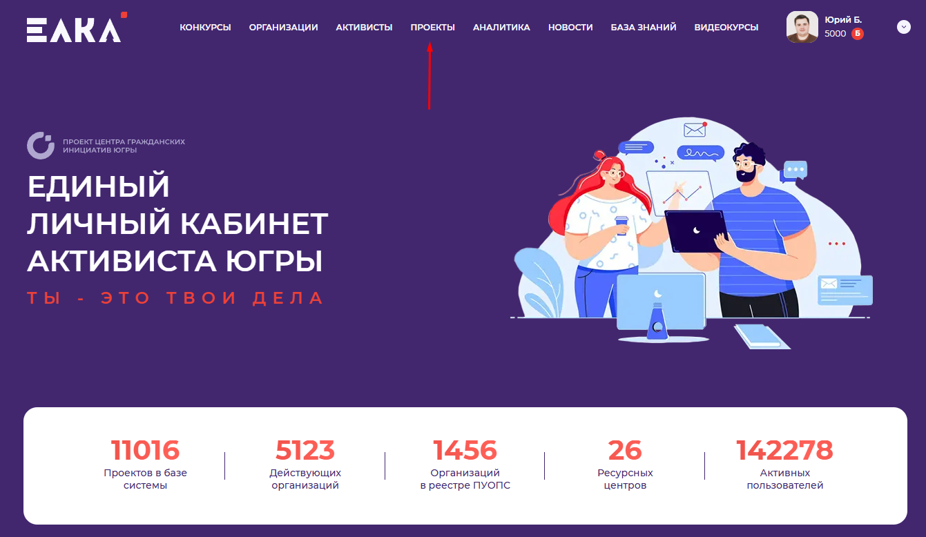 Для начала необходимо перейти в базу, нажав в главном меню на вкладку "Проекты"