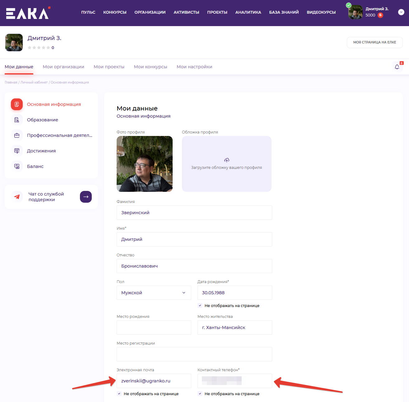 Если вы не хотите чтобы ваши контактные данные или возраст видели другие пользователи, вы можете оставить галочку “Не отображать на странице” там где это доступно.