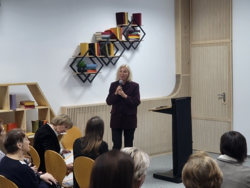 Затем Наталья Маслова озвучила приветствие от Марины Данииловны, которая отметила, что важно не только вспоминать даты и факты, а создавать живую связь с прошлым через личные истории, семейные традиции, участие в конкурсах чтецов военных произведений авторов-фронтовиков, в историко-культурных акциях, таких как «Читающий автобус».