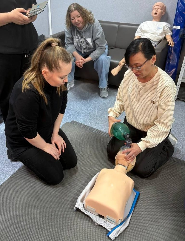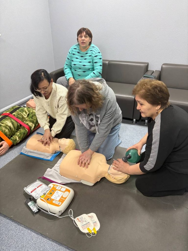 Это занятие было полностью практическим. Каждый участник проекта из ЛГ МАДОУ «Детского сада №4 «Солнышко» лично отрабатывал полный цикл СЛР на современных манекенах с обратной связью. Инструкторы учили правильной технике: глубина и частота нажатий на грудную клетку, соотношение 30:2 с искусственными вдохами, контроль эффективности.