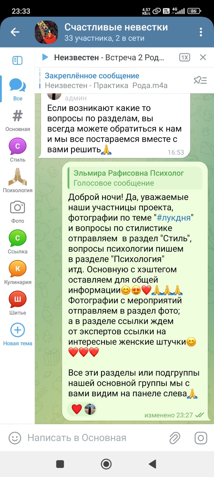 В группе в телеграмме в разделе Стиль проводится основная работа по созданию образа более 40 участниц, разбор гардероба. Участницы выкладывают свои образы с хештегом #лукдня и делятся своими фотографиями, пожеланиями. Педагог по стилю дает свои комментарии на образы участниц, делится советами.